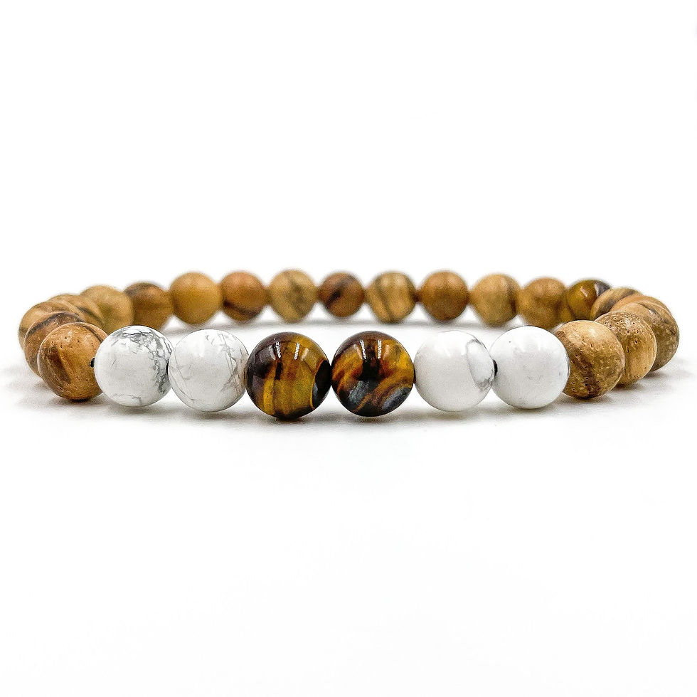 Tigers Eye, White Howlite & Sandalwood Beaded Bracelet